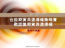 台股期貨與選擇權策略實 戰認識期貨與選擇權 講師林偉麒 Copyright by ARTCOM PT