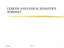 LEXICON AND LEXICAL SEMANTICS WORDNET 2004 05 ANLE 1