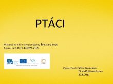 PTÁCI Materiál vznikl v rámci projektu Škola pro