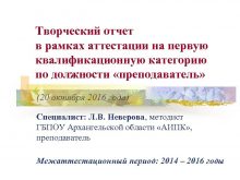 Творческий отчет в рамках аттестации на первую квалификационную