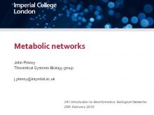 Metabolic networks John Pinney Theoretical Systems Biology group