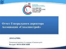 Отчет Генерального директора Ассоциации Сахалинстрой ДОКЛАДЧИК Генеральный директор