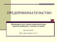 ПРЕДПРИНИМАТЕЛЬСТВО Материалы для курсов переподготовки военнослужащих и членов