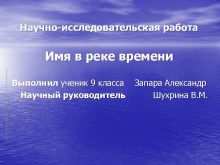 Научно-исследовательская работа Имя в реке времени Выполнил ученик