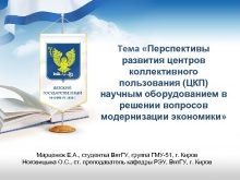 Тема Перспективы развития центров коллективного пользования ЦКП научным