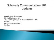Scholarly Communication 101 Updates Google Book Settlement NIH