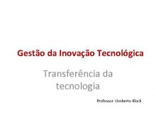 Gestão da Inovação Tecnológica Transferência da tecnologia Professor