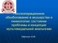 Послеоперационное обезболивание в акушерстве и гинекологии состояние проблемы