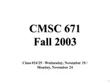 CMSC 671 Fall 2003 Class 24 25 Wednesday November