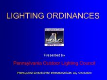 LIGHTING ORDINANCES Presented by Pennsylvania Outdoor Lighting Council