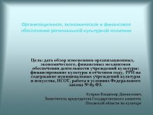 Организационное экономическое и финансовое обеспечение региональной культурной политики