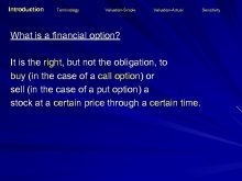 Introduction Terminology Valuation-Simple Valuation-Actual What is a financial