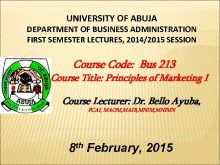 UNIVERSITY OF ABUJA DEPARTMENT OF BUSINESS ADMINISTRATION FIRST