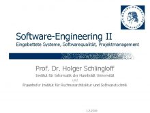 Software-Engineering II Eingebettete Systeme Softwarequalität Projektmanagement Prof Dr