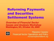 Reforming Payments and Securities Settlement Systems Overview of