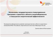 Российское энергетическое агентство Механизмы государственного стимулирования программ и