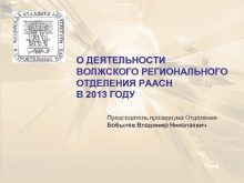 О ДЕЯТЕЛЬНОСТИ ВОЛЖСКОГО РЕГИОНАЛЬНОГО ОТДЕЛЕНИЯ РААСН В 2013