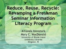 Reduce Reuse Recycle Revamping a Freshman Seminar Information