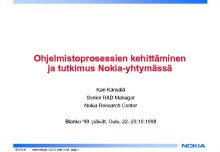 Ohjelmistoprosessien kehittäminen ja tutkimus Nokia-yhtymässä Kari Känsälä Senior