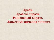 Дроби Дробові вирази Раціональні вирази Допустимі значення змінних