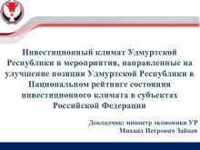 Инвестиционный климат Удмуртской Республики и мероприятия направленные на