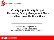 Quality Input Quality Output Developing Quality Management Plans