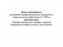 Итоги мониторинга выявления профессиональных затруднений педагогических работников ОУ