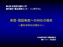 第2回 東京医科歯科大学 歯科器材 薬品開発センター シンポジウム 承認 認証制度への対応の現状 歯科材料の分野から 日本歯科材料 業協同組合 ジーシー 中里良次