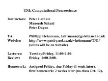 TNI Computational Neuroscience Instructors Peter Latham Maneesh Sahani