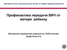 Приоритетный национальный проект в сфере здравоохранения Профилактика передачи