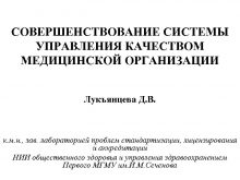 СОВЕРШЕНСТВОВАНИЕ СИСТЕМЫ УПРАВЛЕНИЯ КАЧЕСТВОМ МЕДИЦИНСКОЙ ОРГАНИЗАЦИИ Лукъянцева Д