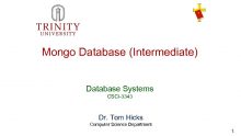 Mongo Database Intermediate Database Systems CSCI-3343 Dr Tom