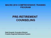 MACRS 2010 COMPREHENSIVE TRAINING PROGRAM PRE-RETIREMENT COUNSELING Dale