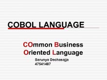 COBOL LANGUAGE COmmon Business Oriented Language Sarunya Dechasajja