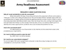 UNCLASSIFIED FOUO Army Readiness Assessment ARAP FREQUENTLY ASKED QUESTIONS