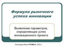 Формула рыночного успеха инновации Выявление параметров определяющих успех