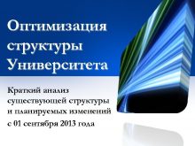 Оптимизация структуры Университета Краткий анализ существующей структуры и