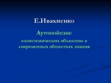 Е Ивахненко Аутопойезис эпистемических объектов в современных обществах