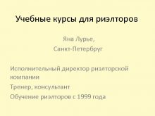 Учебные курсы для риэлторов Яна Лурье Санкт-Петербруг Исполнительный