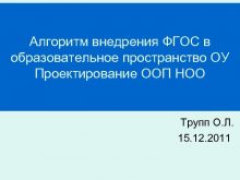 Алгоритм внедрения ФГОС в образовательное пространство ОУ Проектирование
