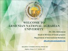 WELCOME TO ARMENIAN NATIONAL AGRARIAN UNIVERSITY Dr Alla
