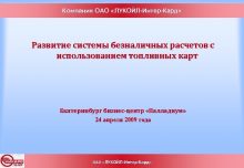Компания ОАО ЛУКОЙЛ-Интер-Кард Развитие системы безналичных расчетов с