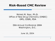 Risk-Based CMC Review Moheb M Nasr Ph D