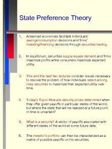 State Preference Theory 1 Advanced economies facilitate individuals