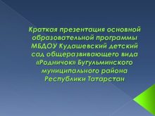 Краткая презентация основной образовательной программы МБДОУ Кудашевский детский