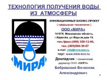 ТЕХНОЛОГИЯ ПОЛУЧЕНИЯ ВОДЫ ИЗ АТМОСФЕРЫ ИННОВАЦИОННЫЙ БИЗНЕС-ПРОЕКТ