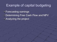 Example of capital budgeting Forecasting earnings Determining Free