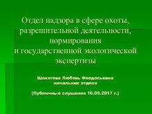 Отдел надзора в сфере охоты разрешительной деятельности нормирования