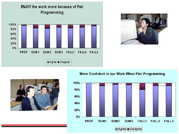Empirical Study for Validation Ø Practice: Summer 1999 Ø 20 Students (Sophomore/Junior) Ø All worked collaboratively Ø Generated more anecdotal/qualitative evidence Ø Solo vs Pair: Fall 1999 Ø 41 Students (Junior/Senior) Ø 28 Worked Collaboratively Ø 13 Worked Individually Ø Software development process was controlled Ø The only experimental variable: pair-programming Ø Quantitative: Time, Quality, Enjoyment, Confidence