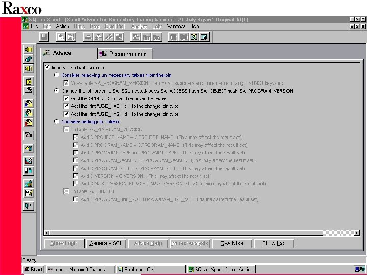 • Analysoi tehottomat SQLlauseet • Tekee SQL: n ja indeksoinnin viritysesitykset • Osoittaa I/O -pullonkauloja • Lähdekielistä koodia ei tarvita, joten SQLab voi virittää sekä omia että kolmannen osapuolen pakettiohjelmistoja sekä ennen että jälkeen tuotantoonoton • SQLab Xpert !!